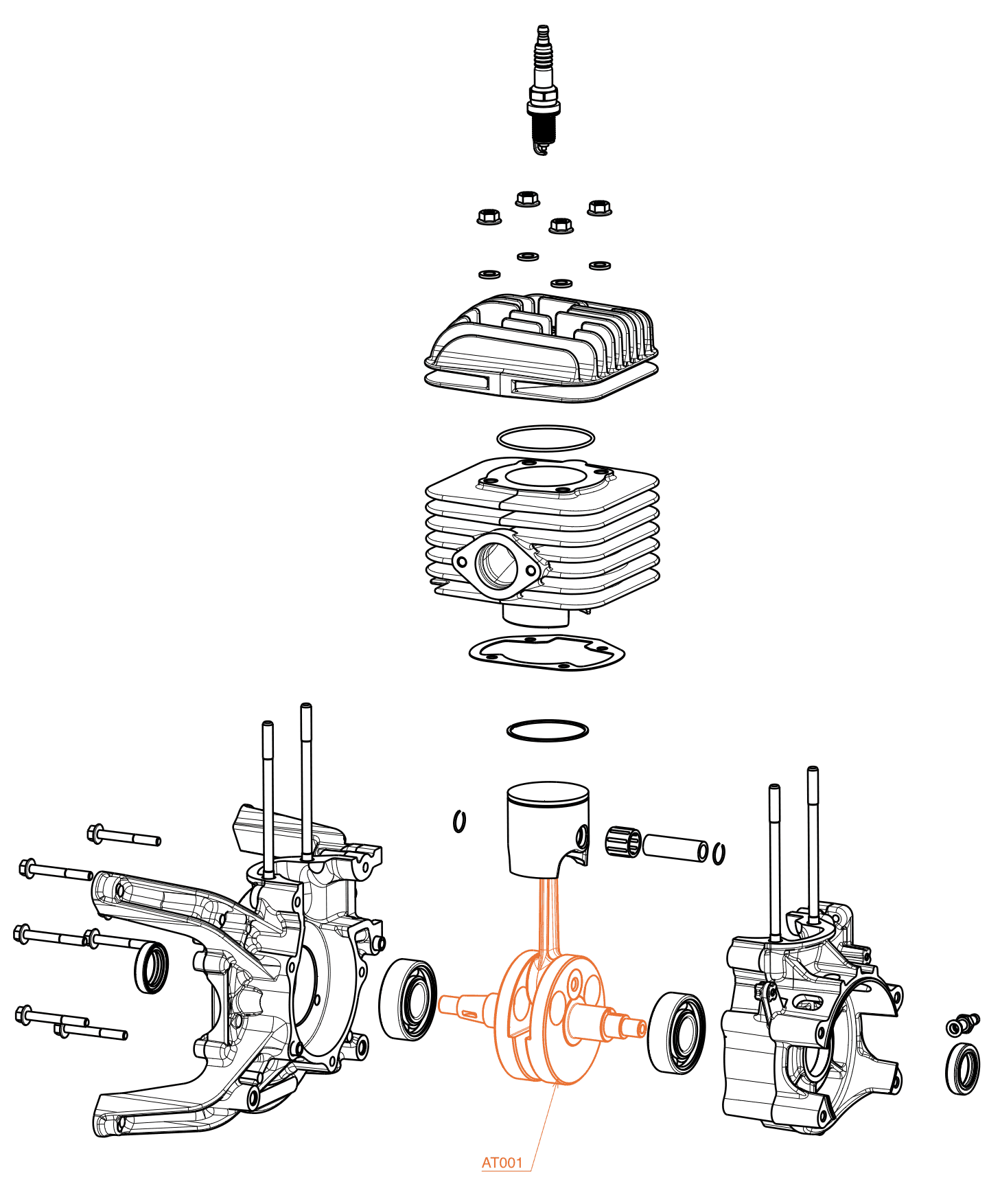 Vilebrequin avec tige de poussée et écrou de volant moteur 10 x 1,25 mm