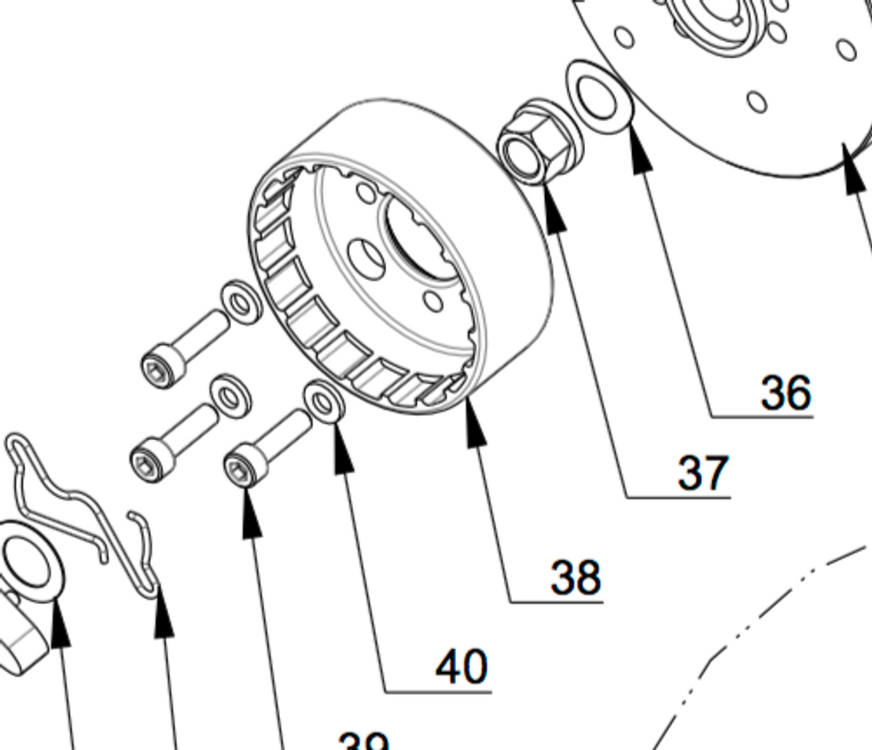 MP038 | Poulie dentée en aluminium pour volant moteur IDM avec boulons, version démarrage manuel